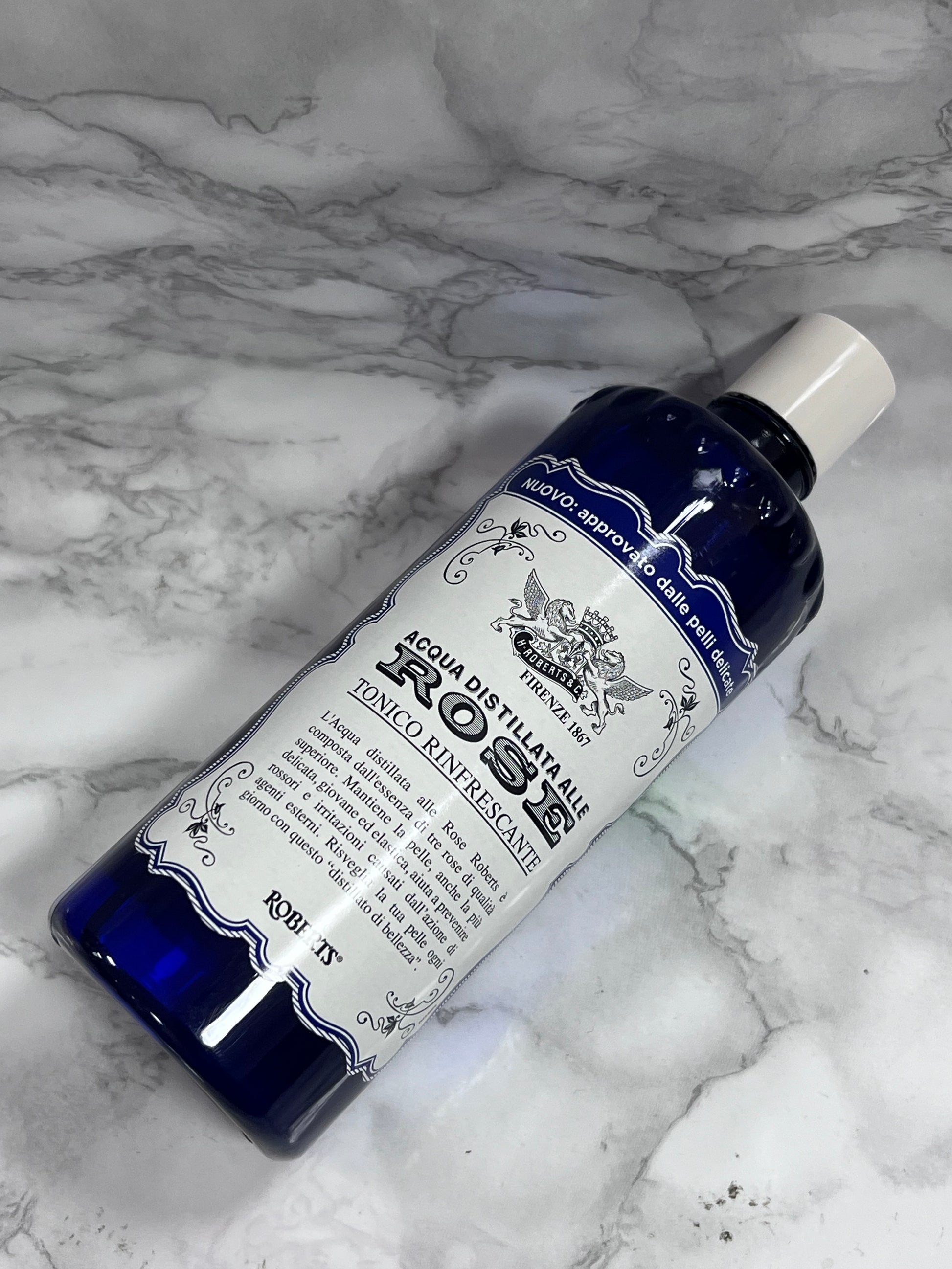 Tonico rinfrescante alle rose. Mantiene la pelle giovane ed elastica, previene rossori ed irritazioni. 300ml.