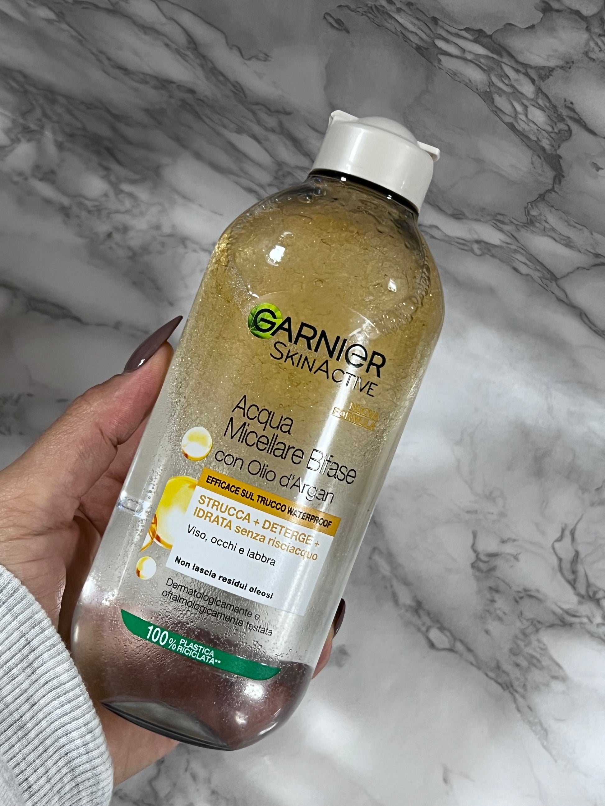 Acqua micellare bifase con olio d’argento. Per viso, occhi e labbra. Adatto a pelli sensibili. Rimuove il trucco anche waterproof, deterge e lenisce. Non comedogeno, non lascia residui oleosi. 400ml.