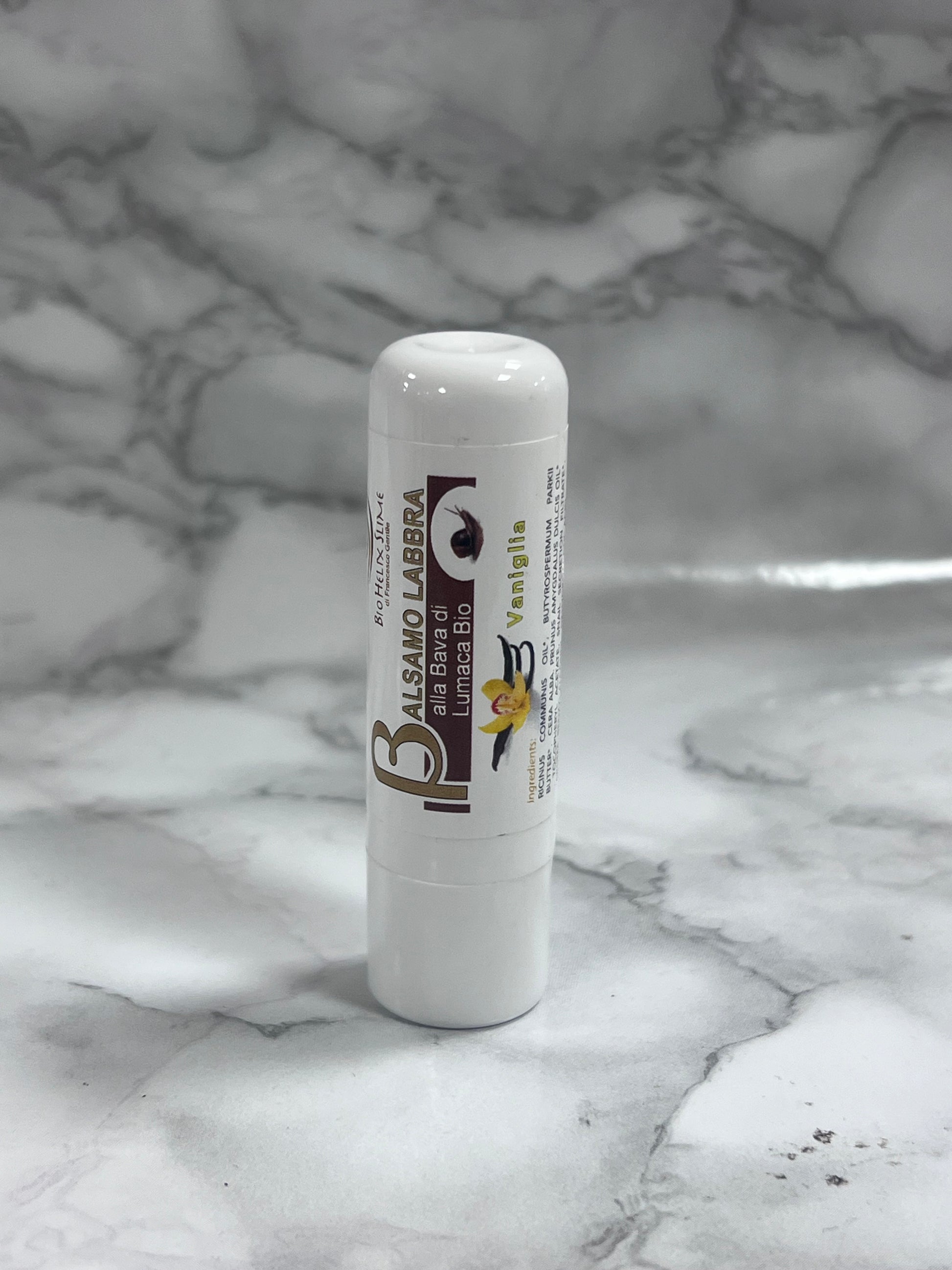Balsamo labbra alla bava di lumaca bio, profumato alla vaniglia. 5ml.