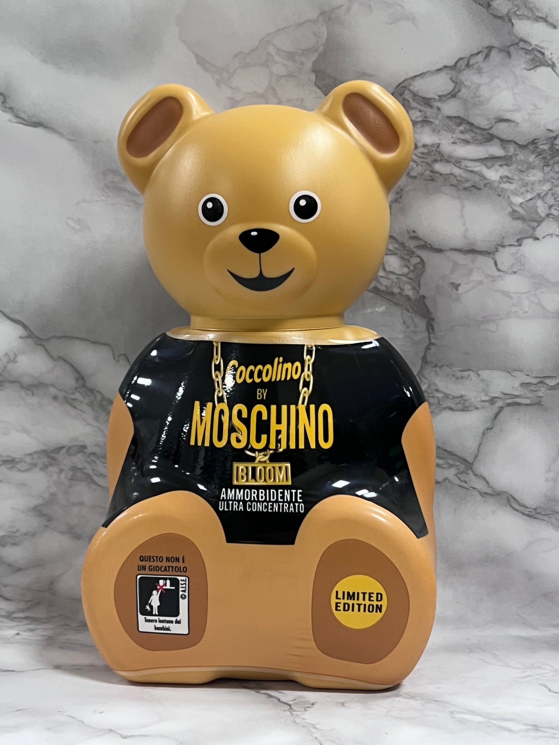 Ammorbidente Coccolino x Moschino ultra concentrato al profumo di fiori bianchi, essenza di agrumi ed ambra. 38 lavaggi, 570ml.