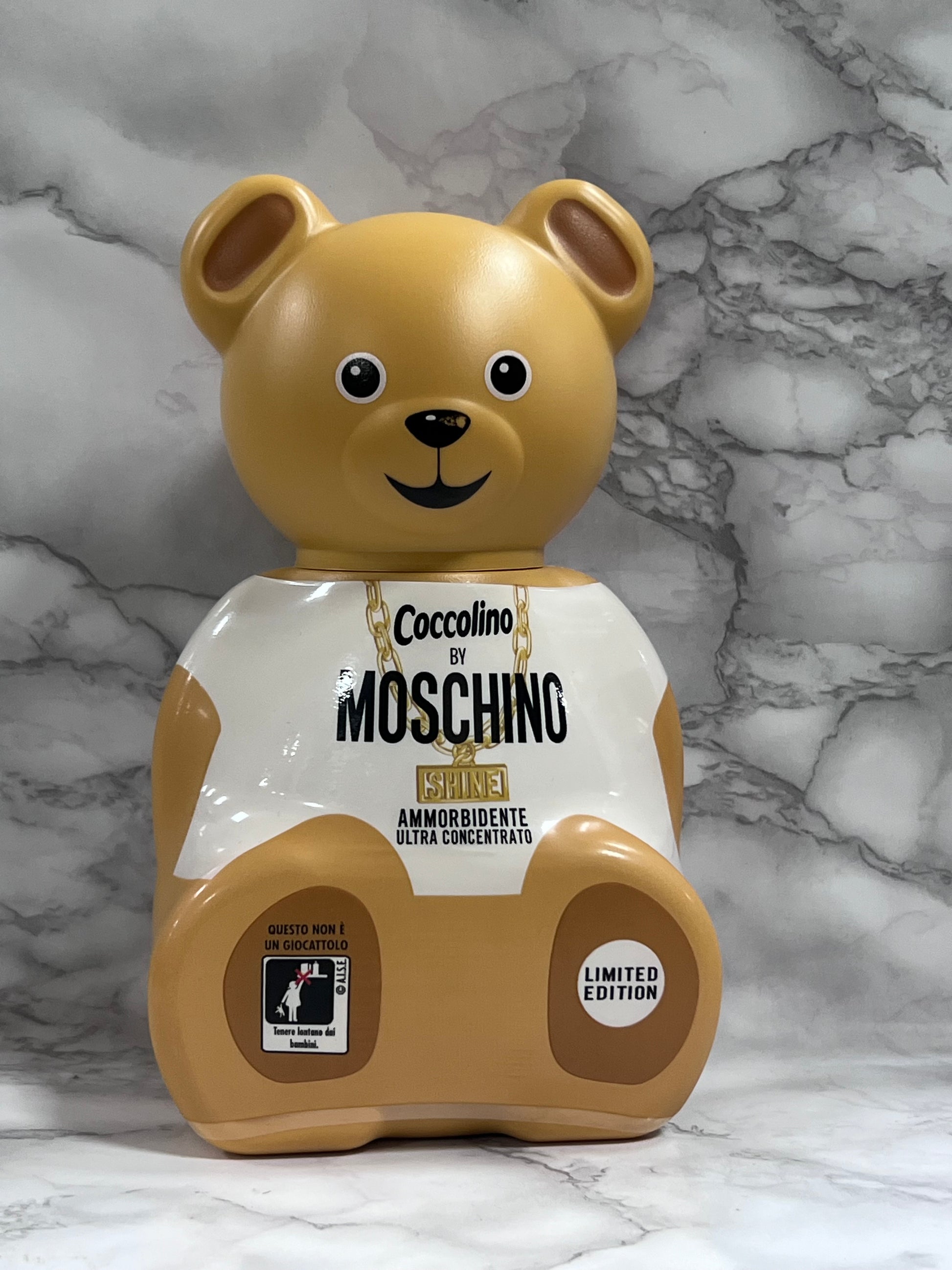 Ammorbidente Coccolino x Moschino ultra concentrato al profumo di orchidee combinato con cedro e frutti rossi. 38 lavaggi, 570ml.