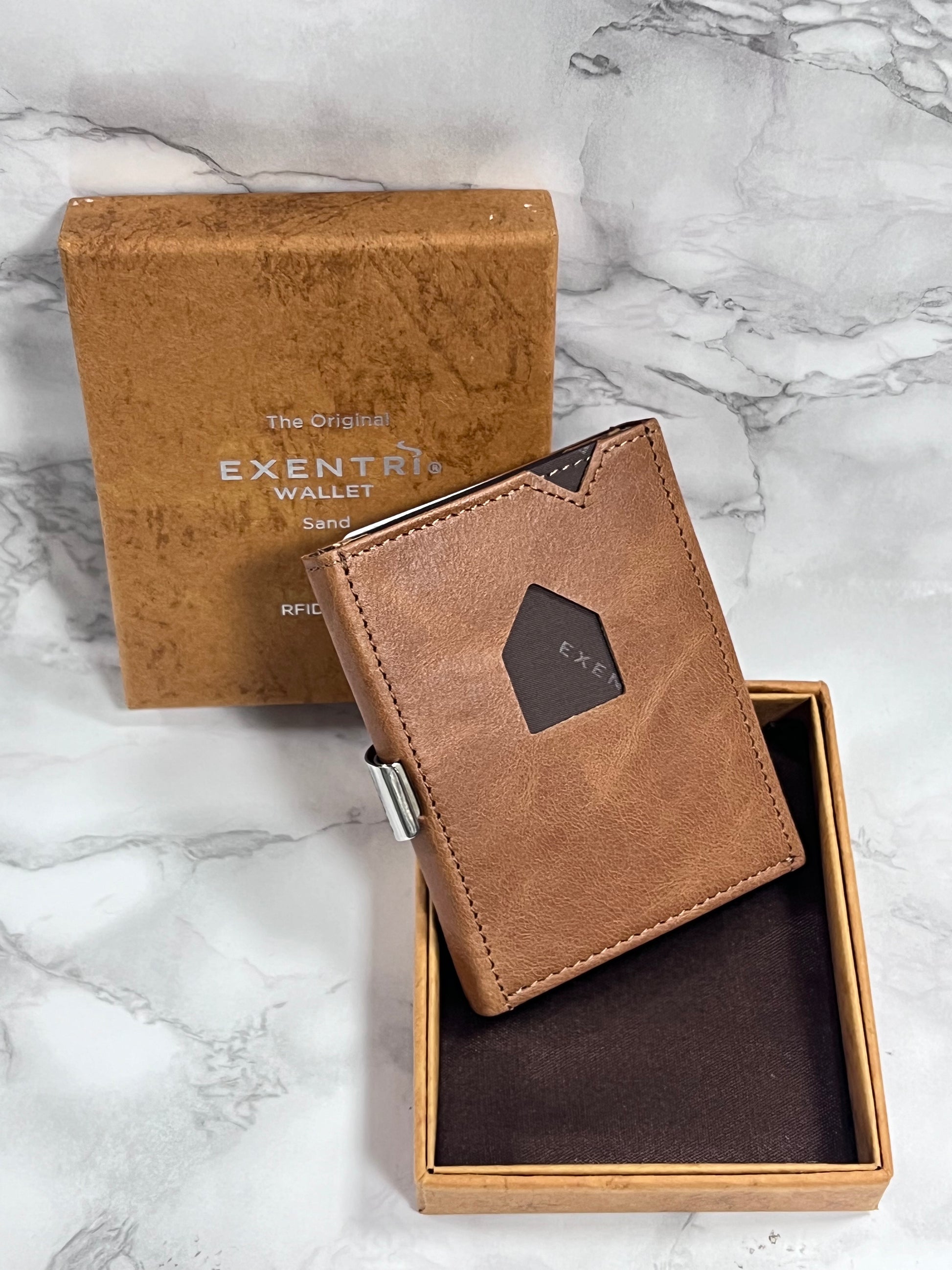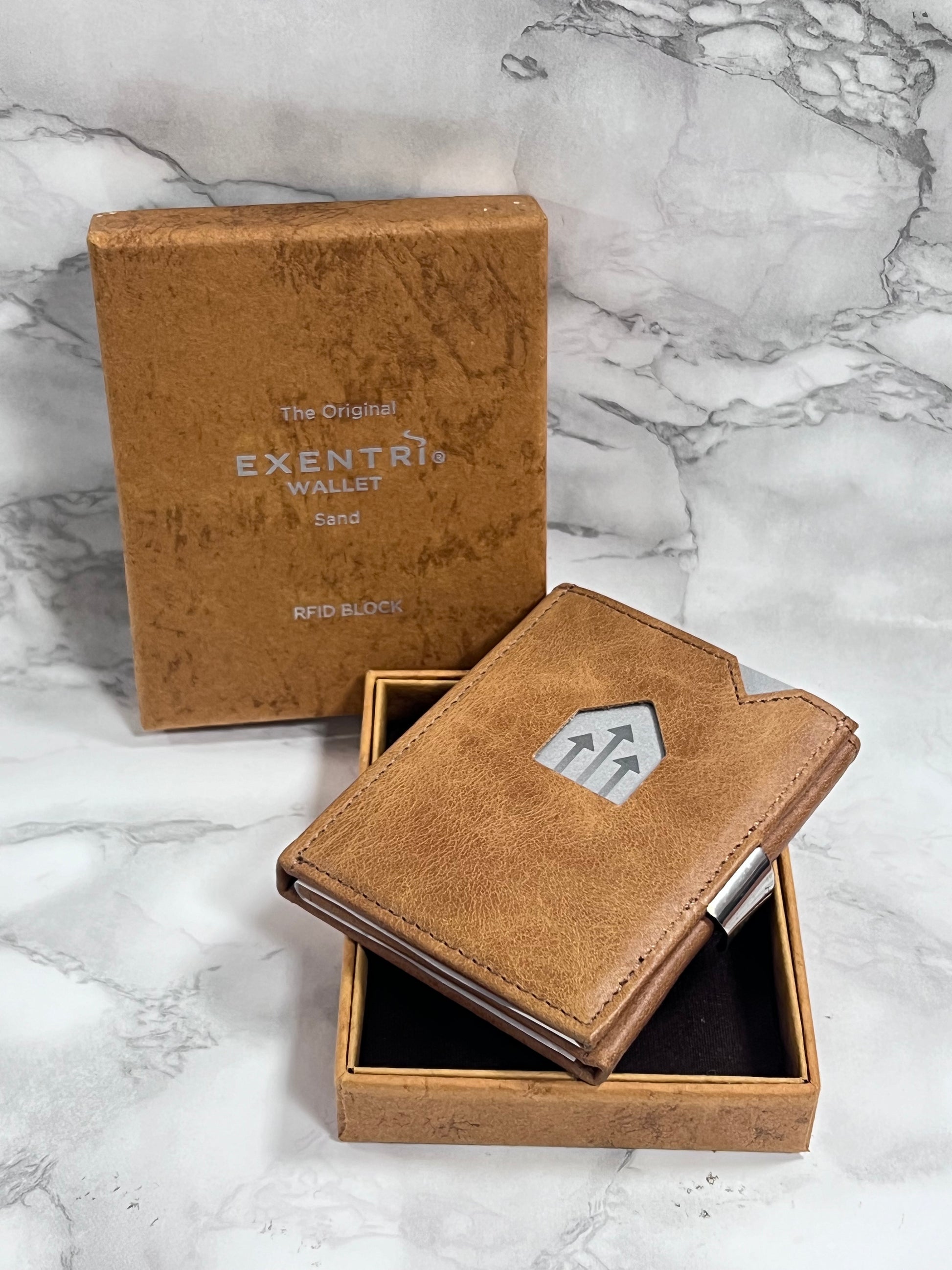 Portafoglio/portacarte in vera pelle, con blocco RFID, accesso rapido e sicuro.