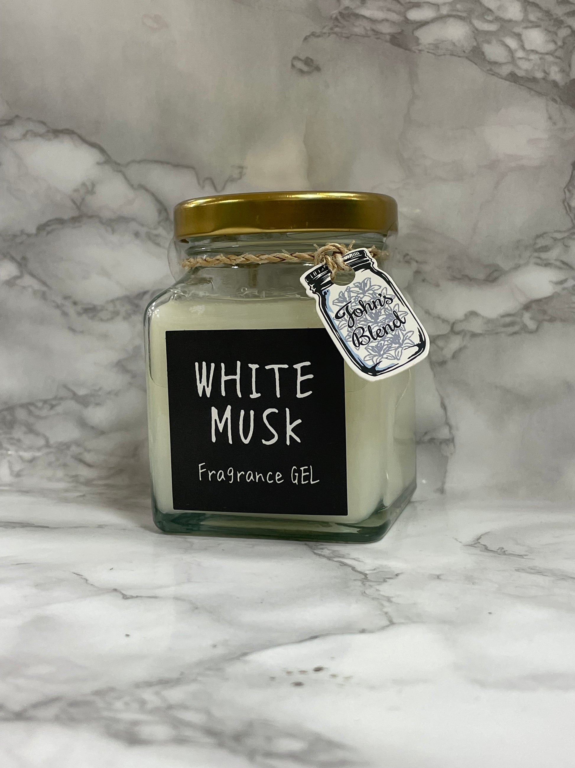 Gel profumato per ambienti, aromatizzato al muschio bianco. 135gr. Durata 4/5 settimane.