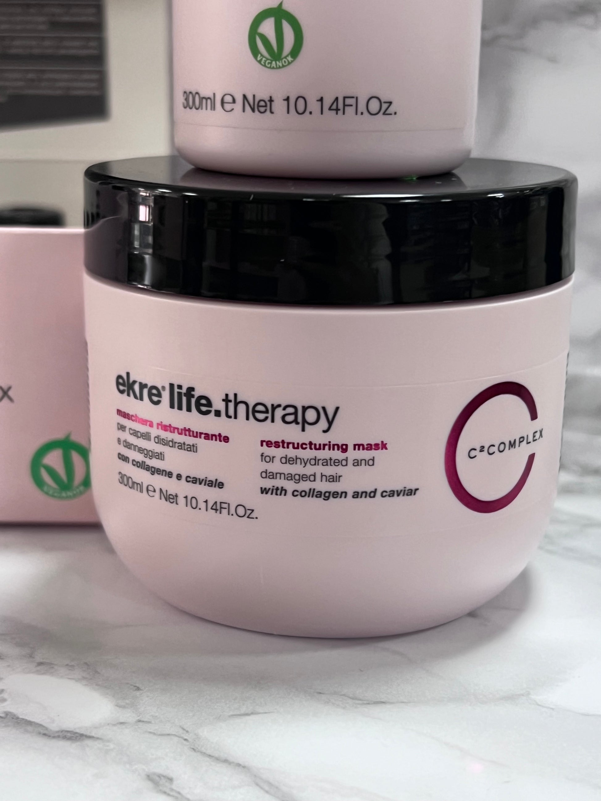 Life.Therapy, maschera ristrutturante per capelli disidratati e danneggiati, con Collagene e Caviale. 300ml.