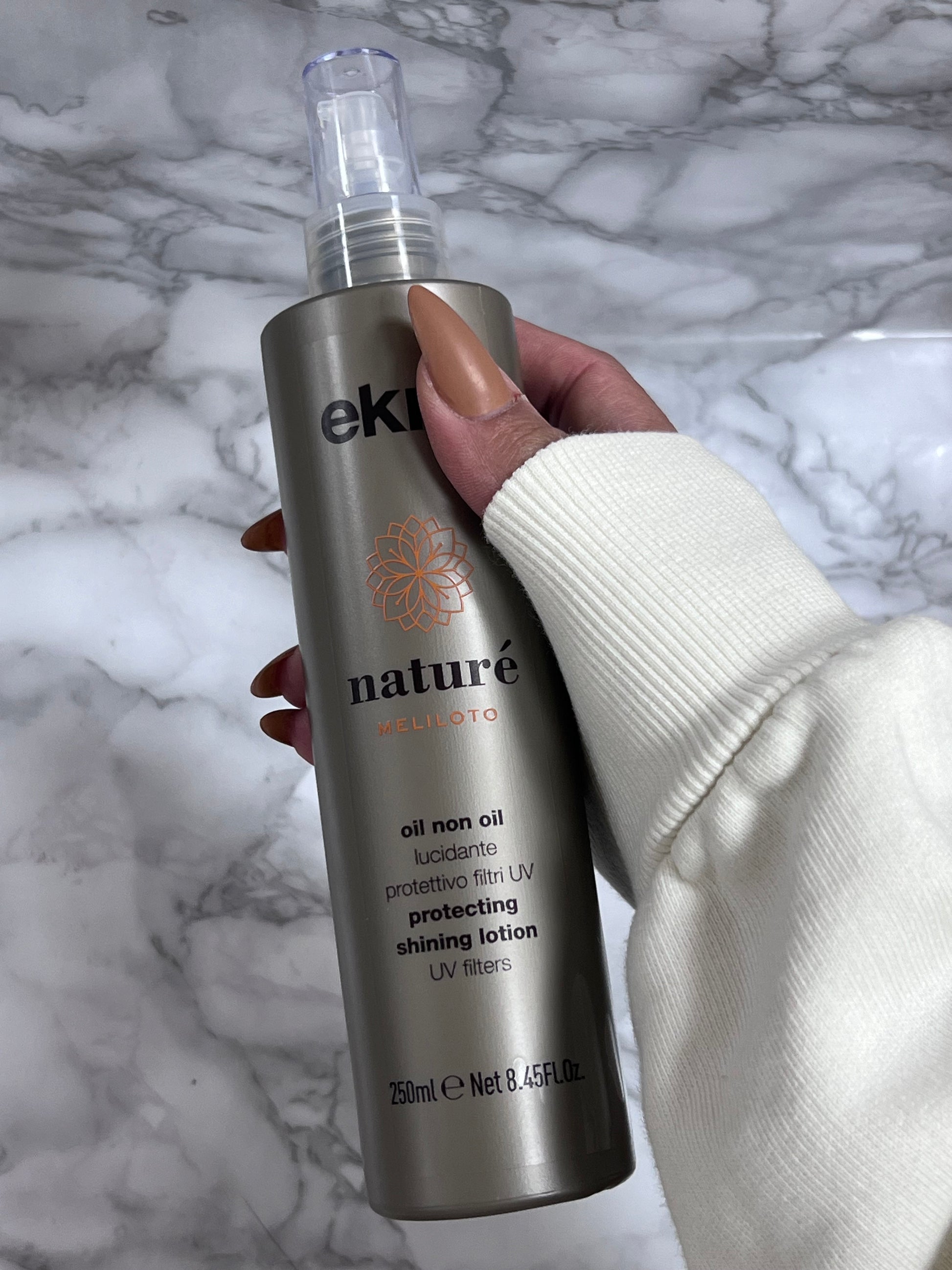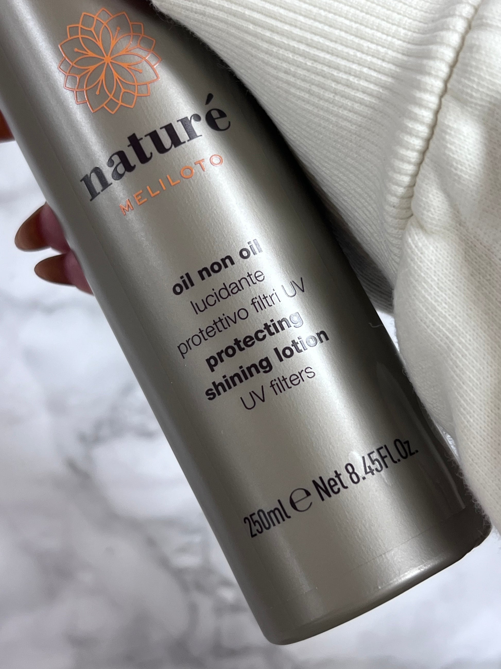 Lucidante protettivo con filtri UV, con estratto di Meliloto. Aiuta a ristrutturare i capelli, proteggendoli dagli agenti atmosferici e dal calore del phon. 250ml.