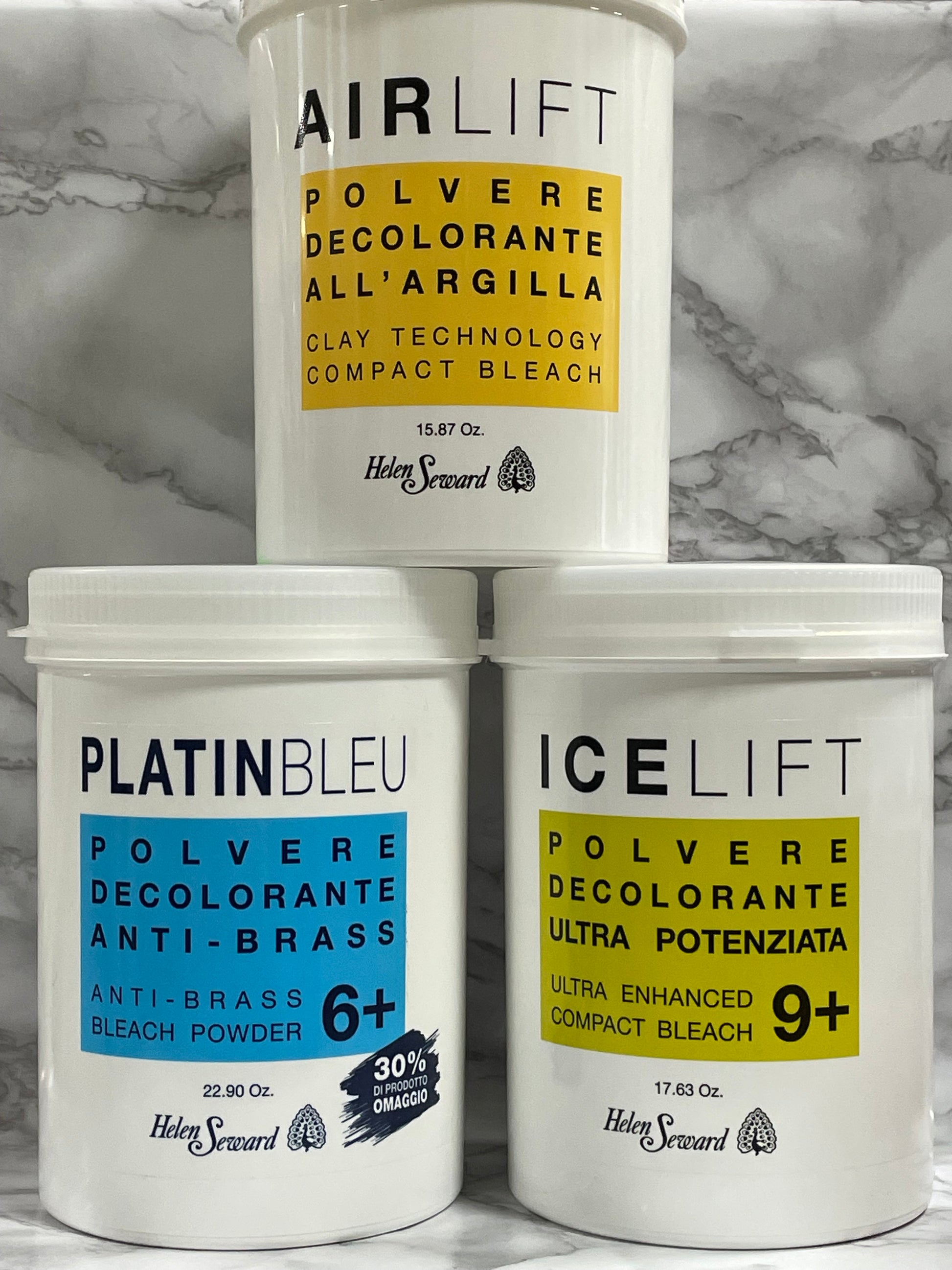 Polvere decolorante anti-brass, per schiariture da medie a forti, fino a 6 toni. Arricchita con pigmenti blu ad effetto anti-rosso. Ideale per schiariture con tecniche a mano libera. 650gr.