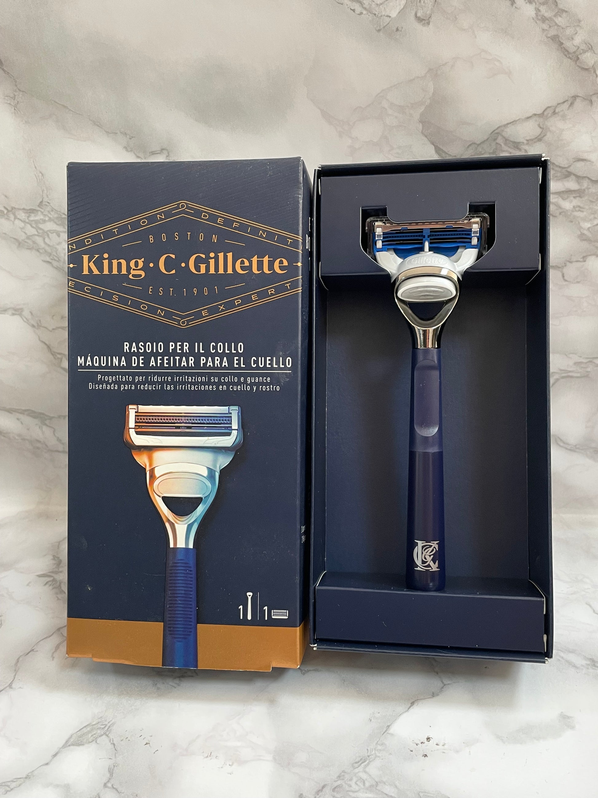 Progettato per ridurre le irritazioni su collo e guance. Due lame con striscia lubrificante skinguard. Manico premium.