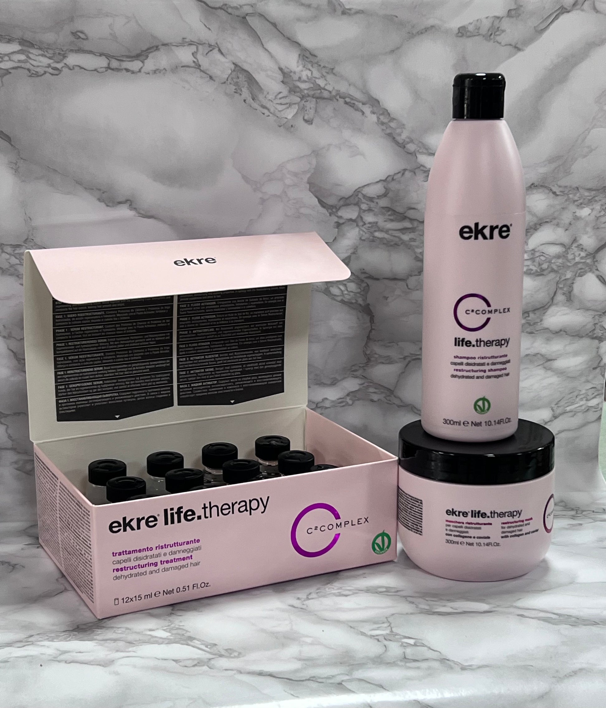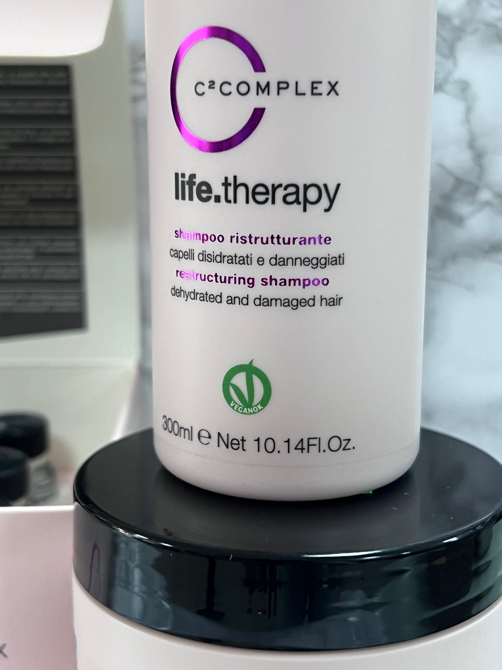 Life.Therapy, shampoo ristrutturante per capelli disidratati e danneggiati, con Proteine da Canapa e Olio di Crusca di Riso. 300ml.